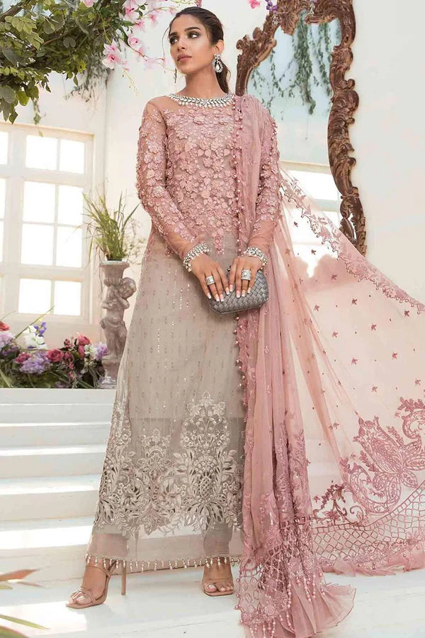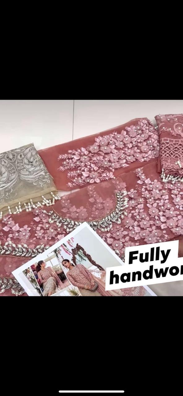 Embroidered Net Sleeves With Pearls & 3D Flowers Hand Work